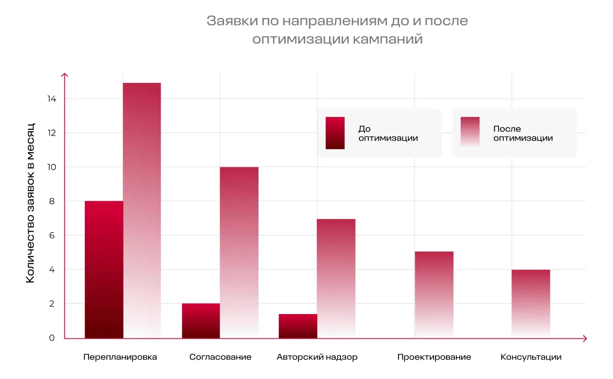 В первый месяц мы регулярно смотрели статистику и вносили правки. Убирали лишние запросы, корректировали ставки, переписывали объявления и переносили бюджет туда, где заявки шли лучше. Параллельно на лендинге уточняли формулировки, переставляли блоки и упрощали процесс записи. Так мы быстро вышли на стабильный поток обращений и удержали стоимость лида на нужном уровне
